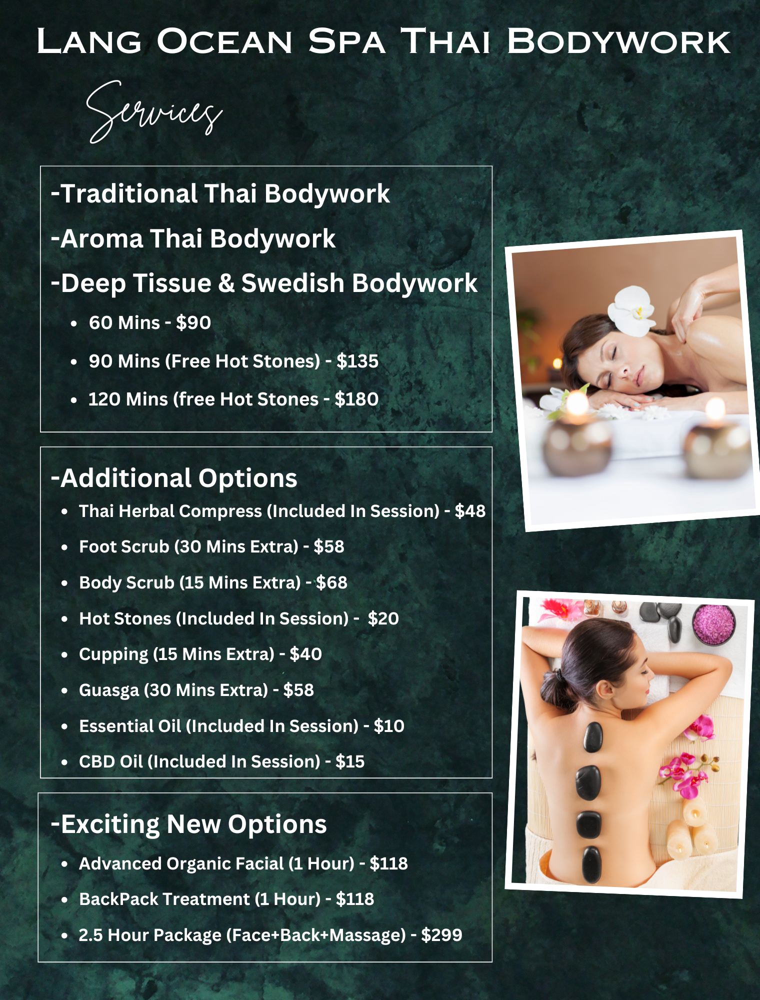 Looking for a place that can truly transform how you feel—physically, emotionally, and mentally? Your search ends here. At Lang Ocean Spa Thai Bodywork in Chicago, IL, we offer a restorative experience designed to help you feel your absolute best.